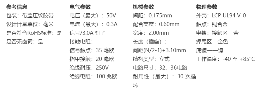 Molex莫仕四排板对板连接器在全球范围内提供32和36引脚配置,并且即将推出20和64引脚配置。此外还计划支持多达100个引脚配置。
